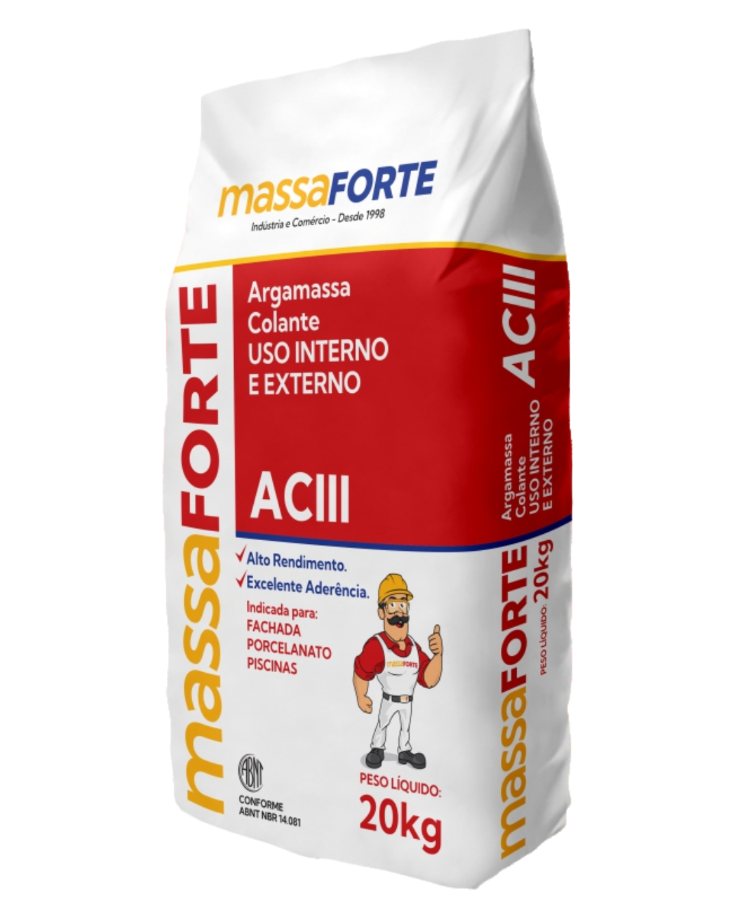 Argamassa Massaforte ACIII para assentamento de porcelanato em áreas externas e internas e áreas de grande movimentação de pedestre.